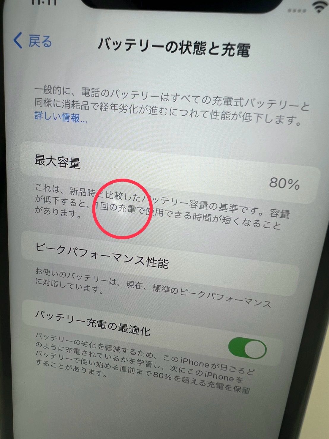 バッテリー最大容量:80%