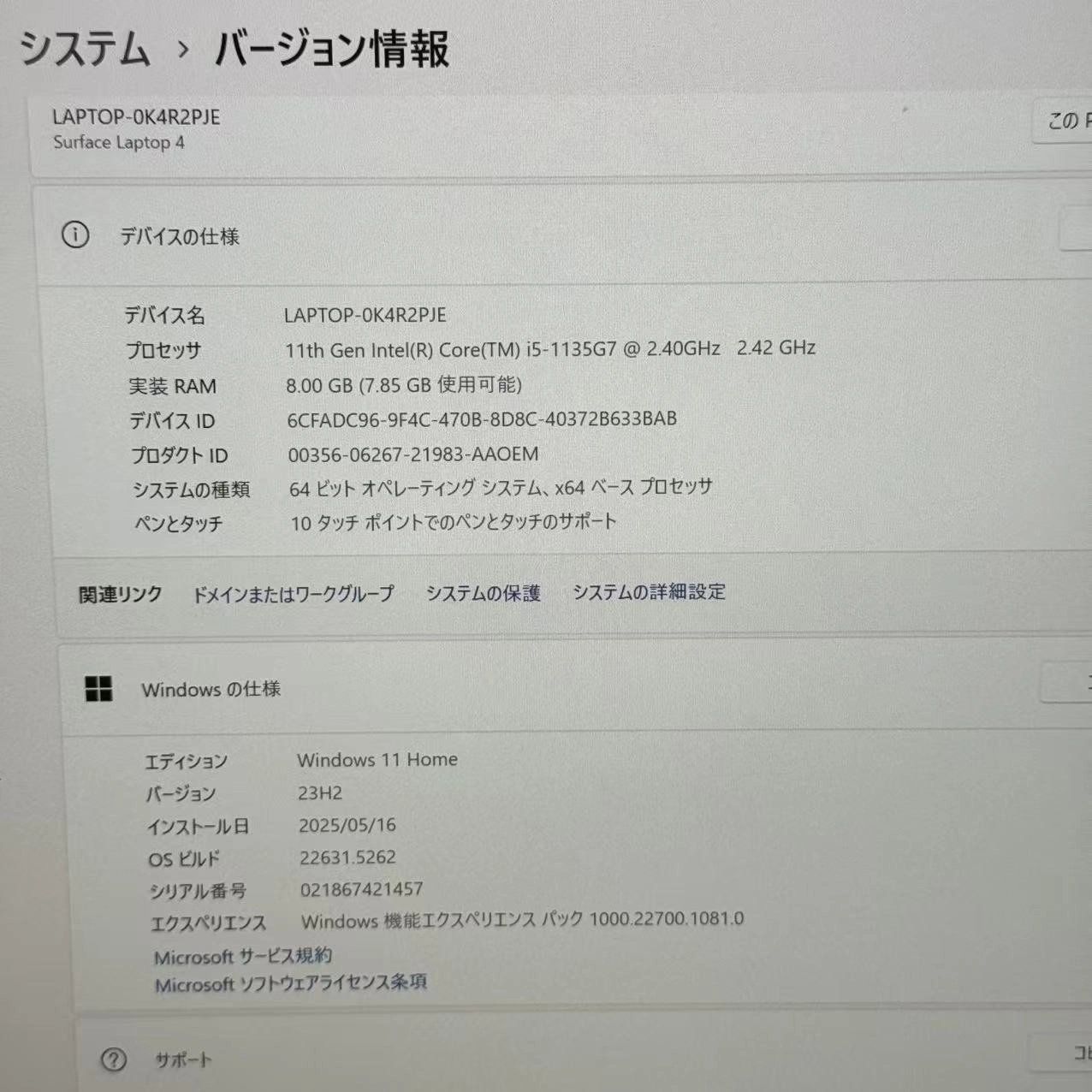 品名 Surface Laptop 4 i5-1135G7 8GB/512GB アイスブルー 5BT-00083 極美品