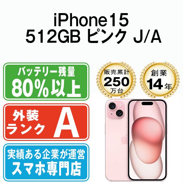 【中古】 iPhone15 512GB ピンク ip15mtm2538