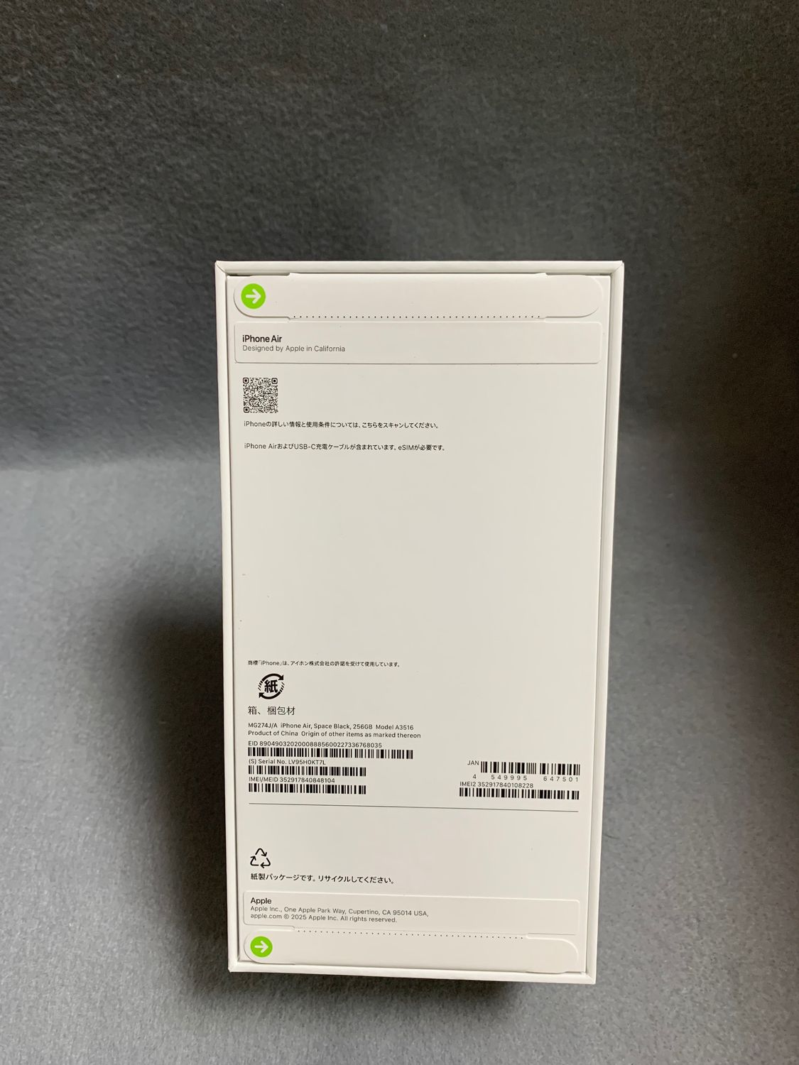 新品未開封 Appleストア版 SIMフリー iPhoneAir 256GB スペースブラック色