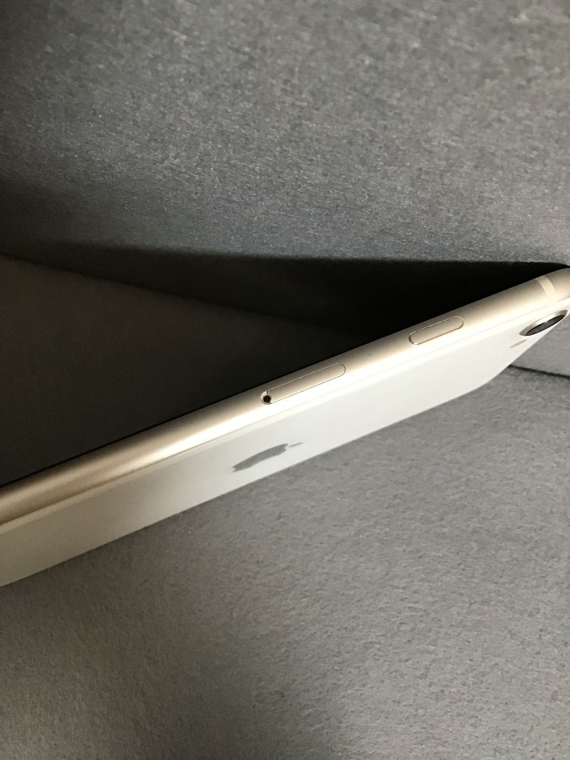 液面、裏面は綺麗ですが、SIMトレー穴に欠け部分があります。トレーの動作には影響ありません。