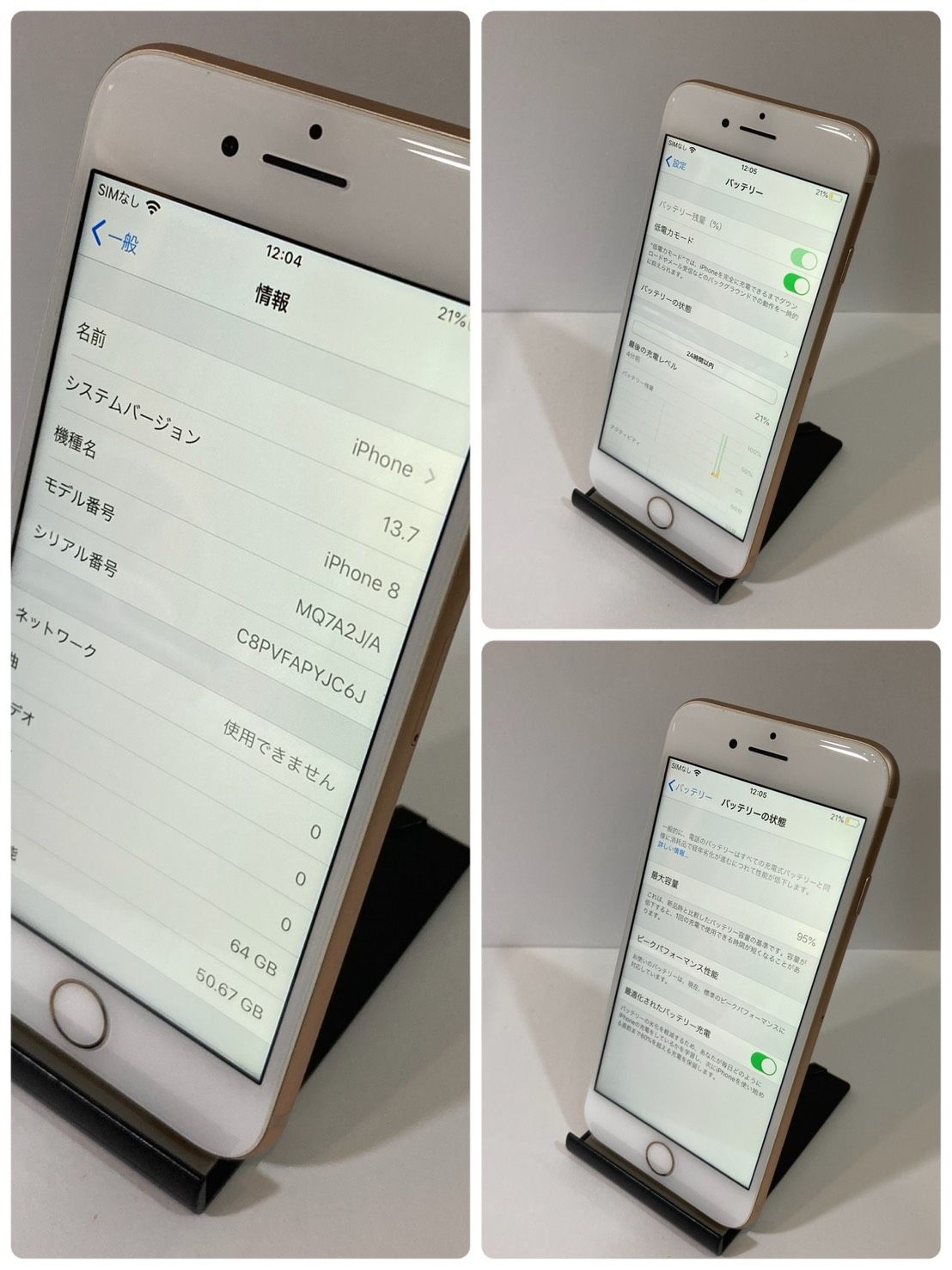 明日発送 中古美品☆iPhone 8 64GB AU版SIMフリー電池95% ゴールド ★全国送料無料