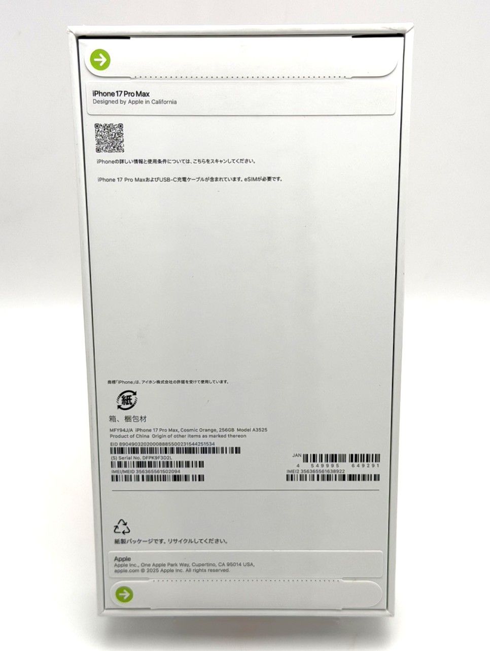 【品名/型番】iPhone17 Pro Max MFY94J/A