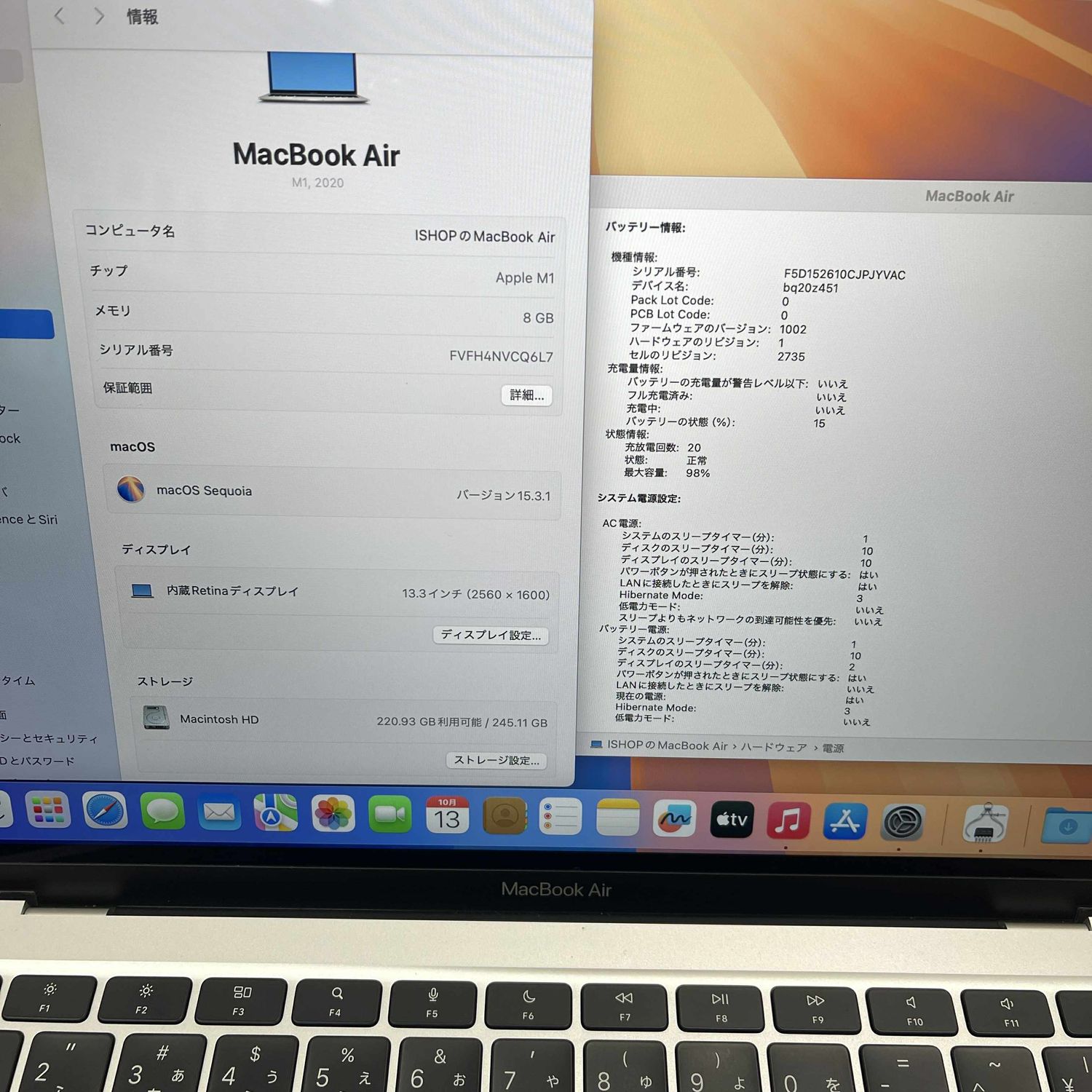 今日発送 MacBook Air 13インチ M1チップ シルバー 2020年 送料無料 CQ6L7
