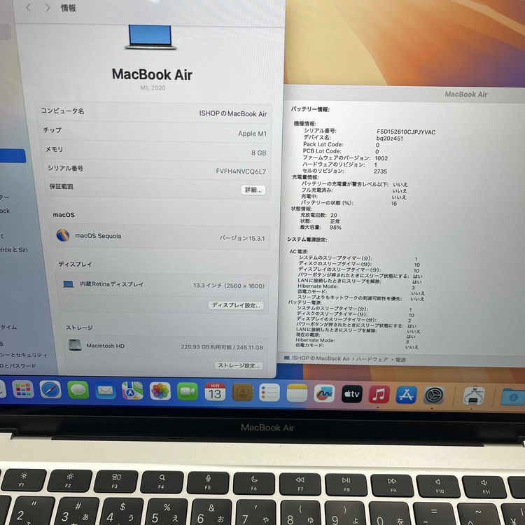 ・充電回数:20回 バッテリー:98%