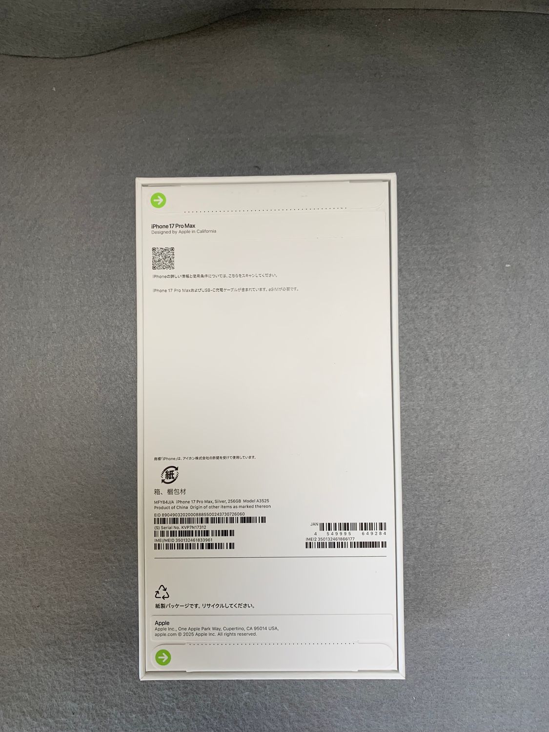 今日発送 新品未開封 Appleストア版 SIMフリー iPhone17ProMax 256GB シルバー色