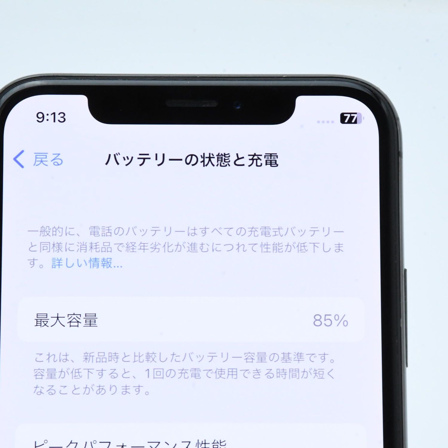 バッテリー最大容量 :100%中85%