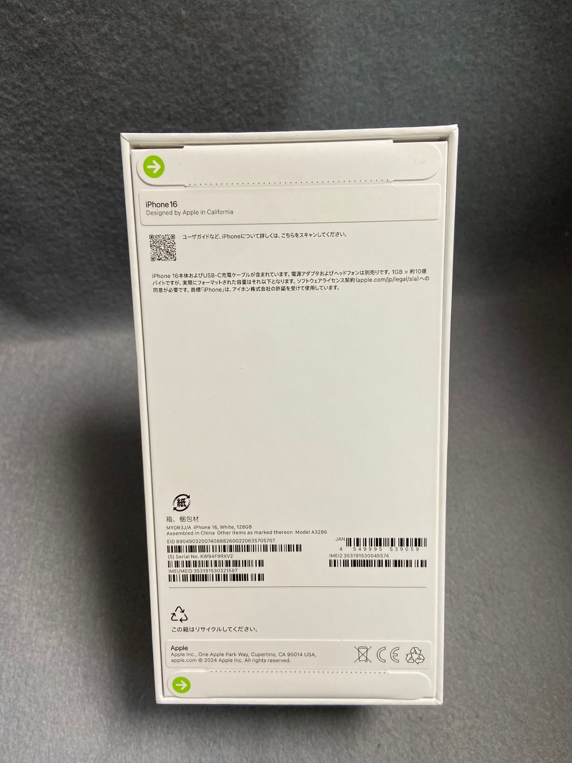 今日発送 新品未開封 Appleストア版 SIMフリー iPhone 16 128GB ホワイト色