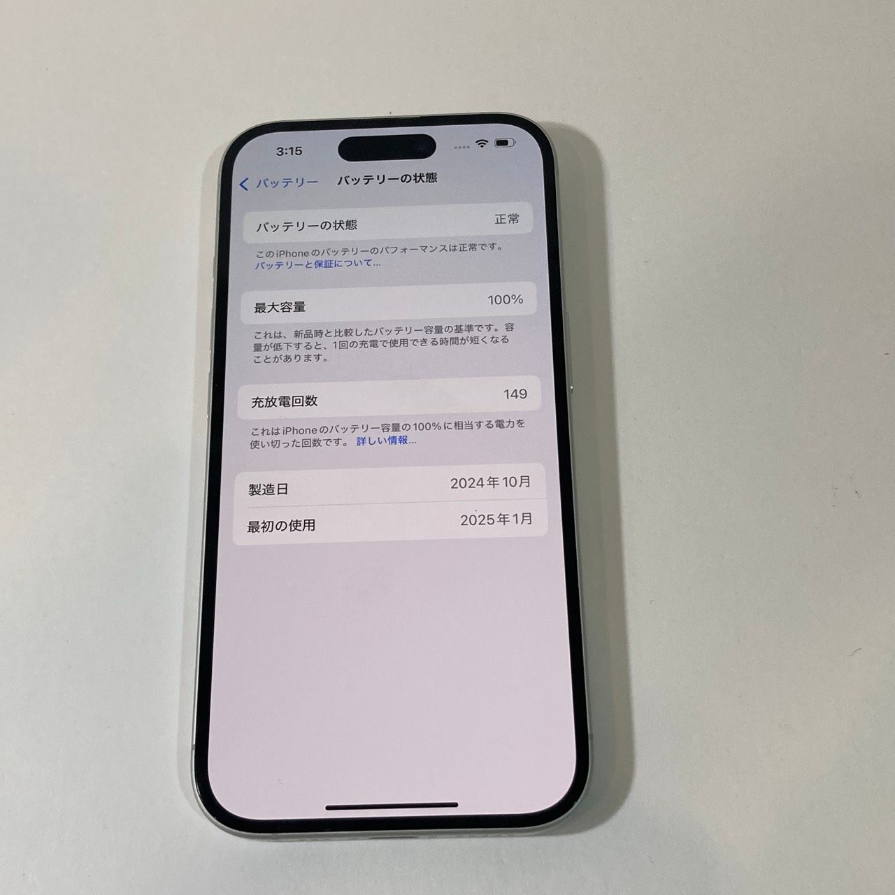 【バッテリーの状態】100%(充電回数149回)(10/23時点)