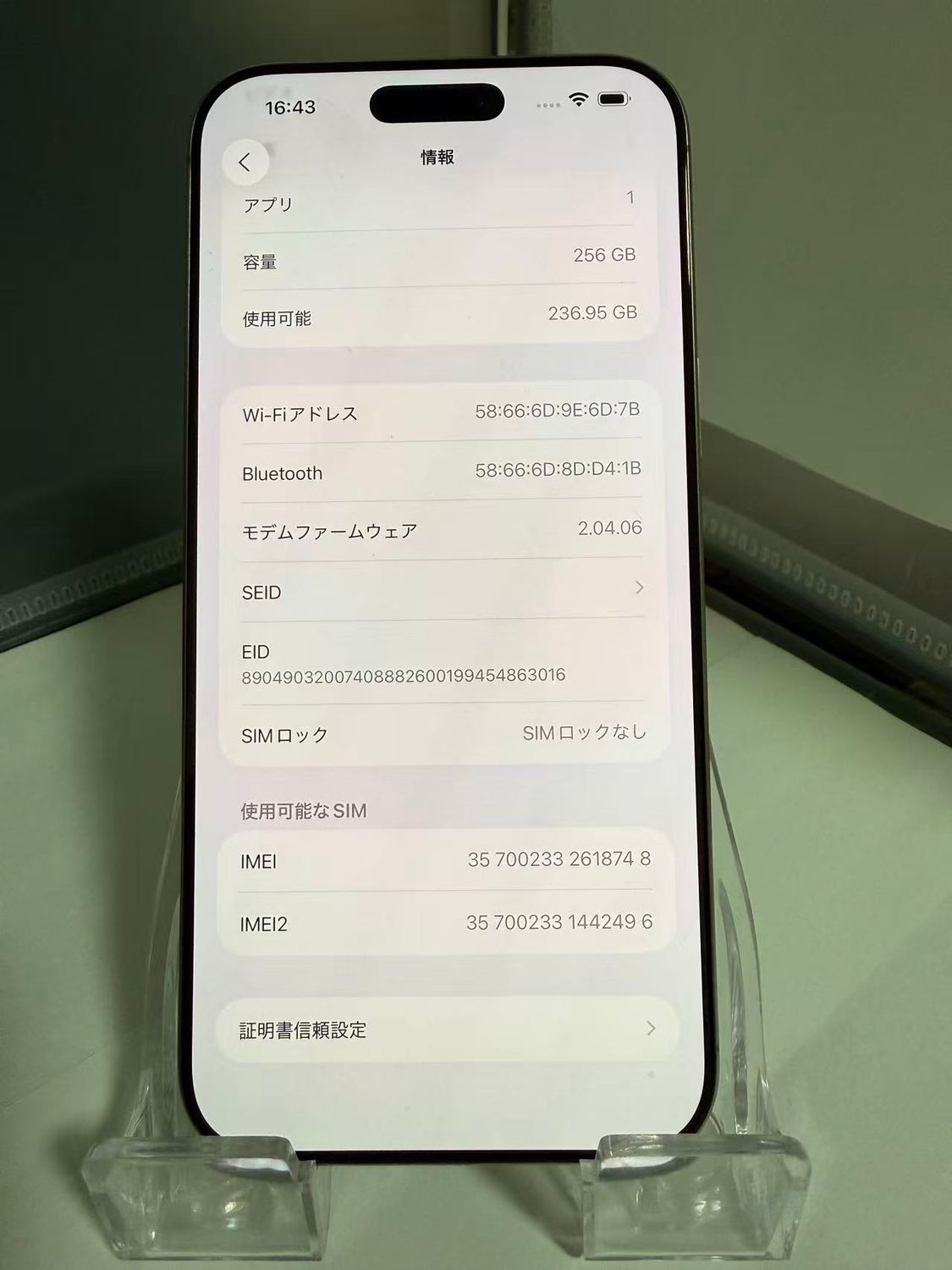 シリアル番号とIMEI番号は控えております。