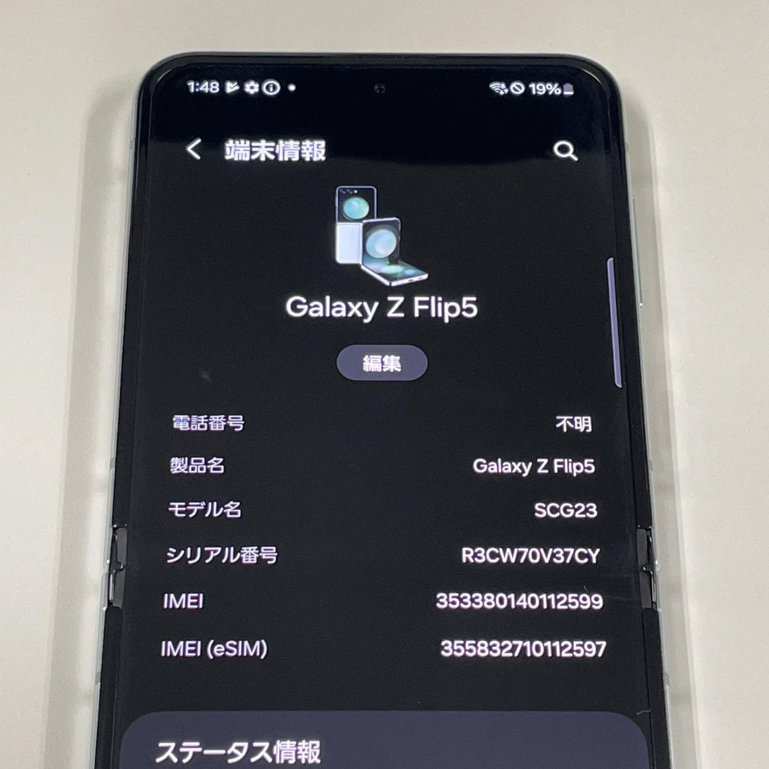 | 機種名 | Galaxy Z Flip5 SCG23 |