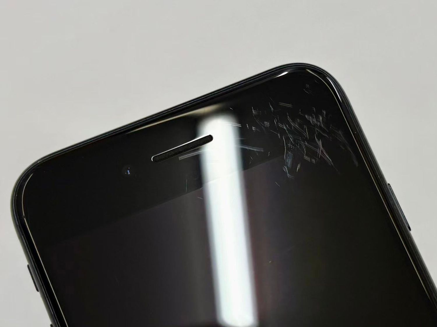 液晶下部にひび割れ、液晶上部に薄い傷が目立ちます。