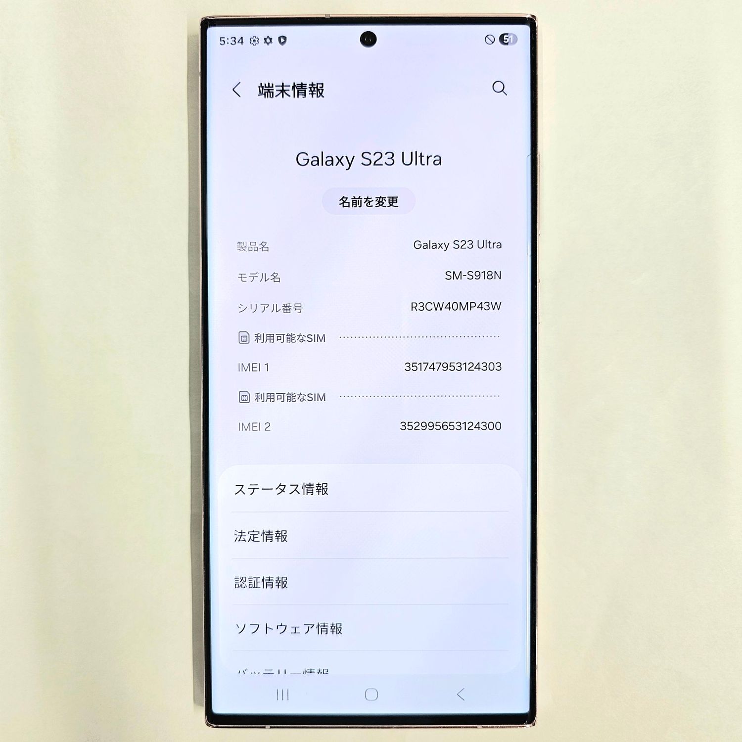 モデル : 韓国 SM-S918N