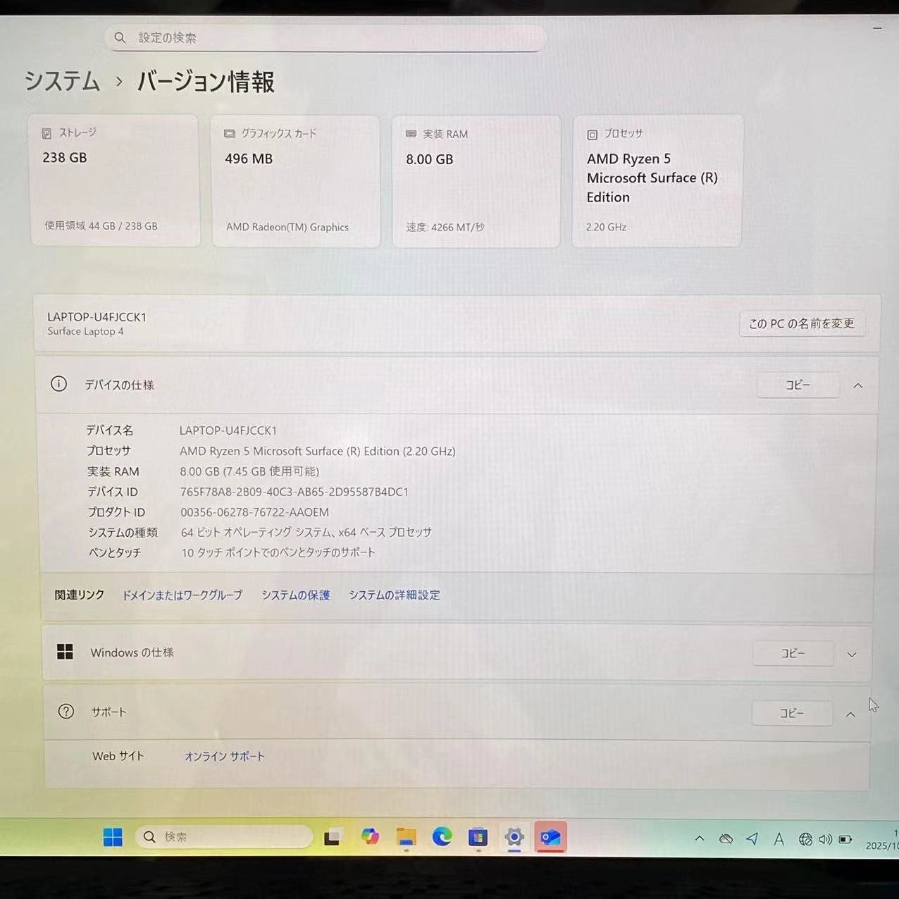 今日発送 即日発送可Surface Laptop 4 8GB/256GB プラチナ 5PB-00046 美品
