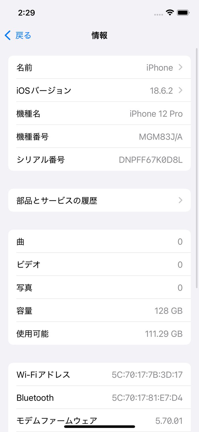 | 機種名 | iPhone12 Pro |