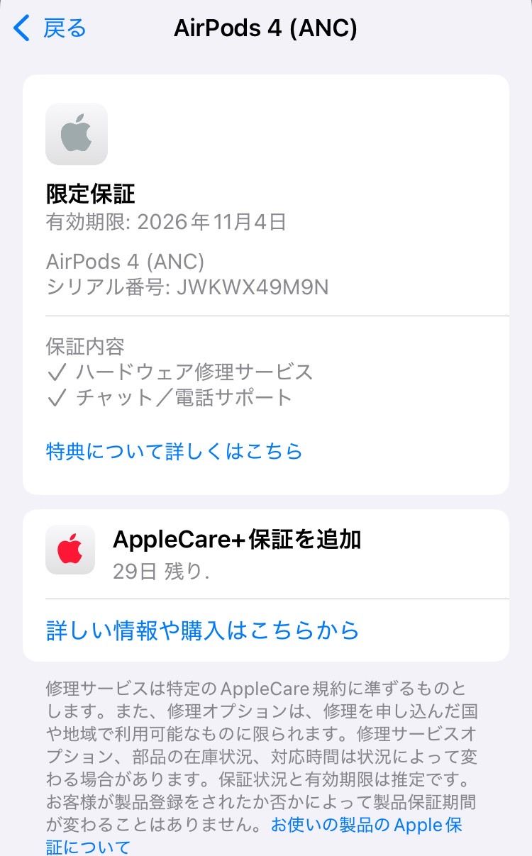 Apple限定保証有効期限:2026年11月4日