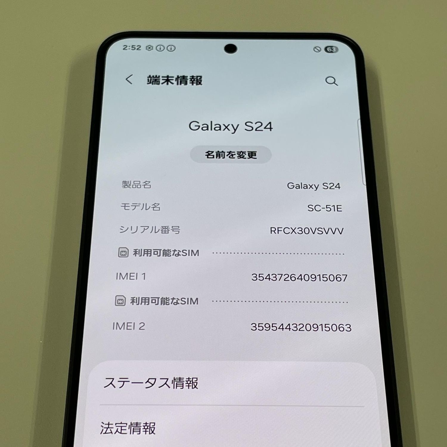 | 機種名 | Galaxy S24 SC-51E |