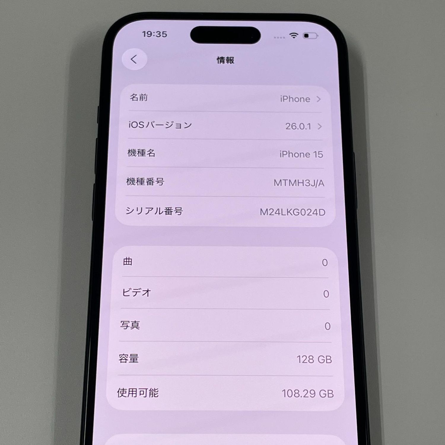 | 機種名 | iPhone15 |