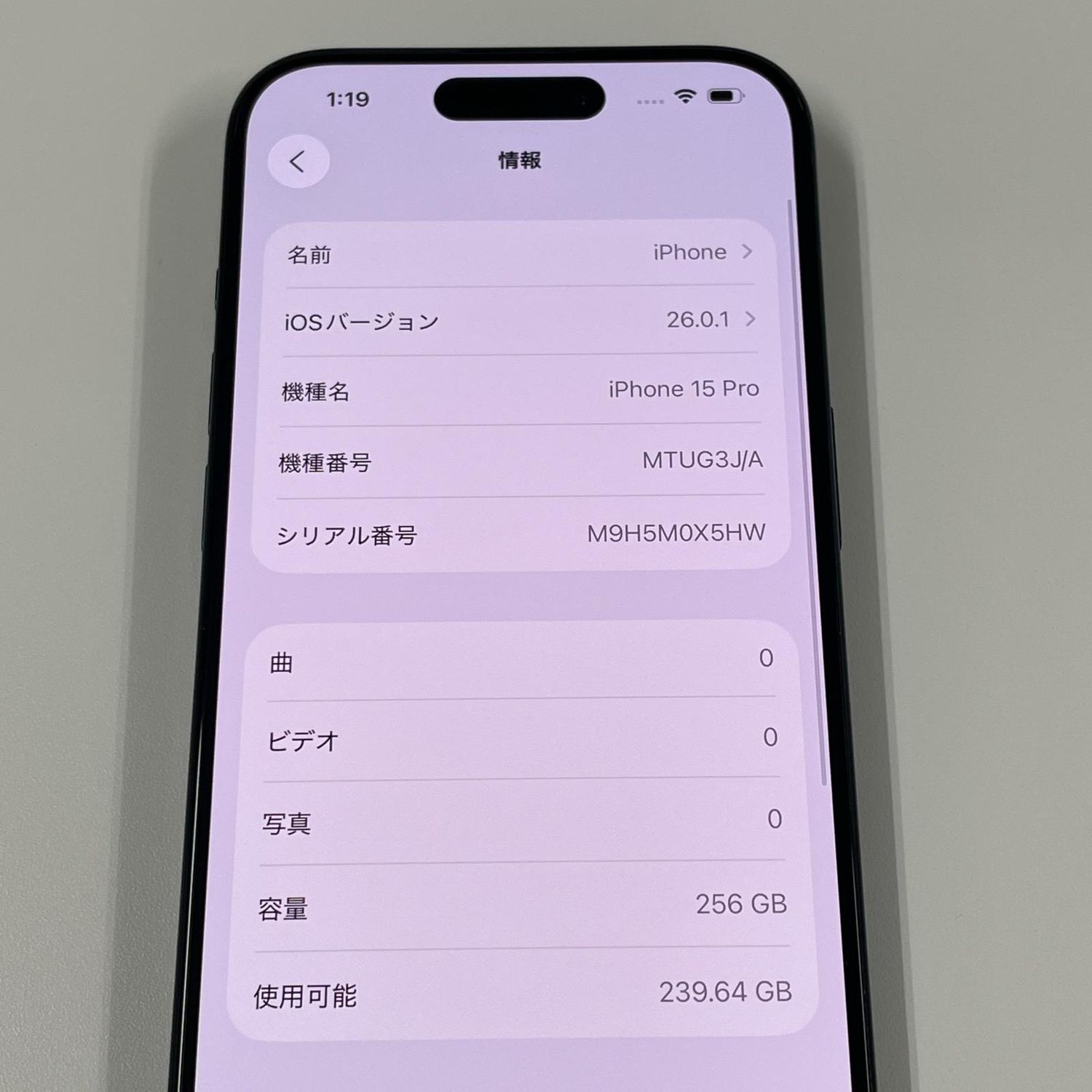 | 機種名 | iPhone15 Pro |