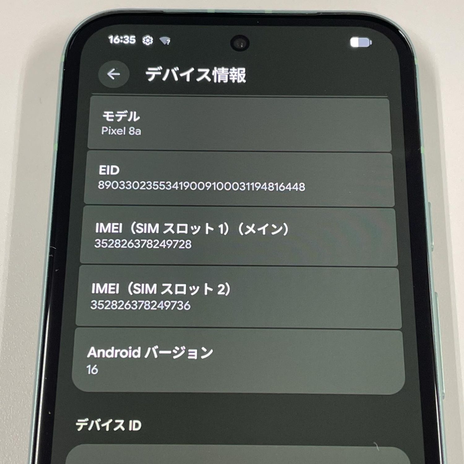 | IMEI番号 | 352826378249728 |