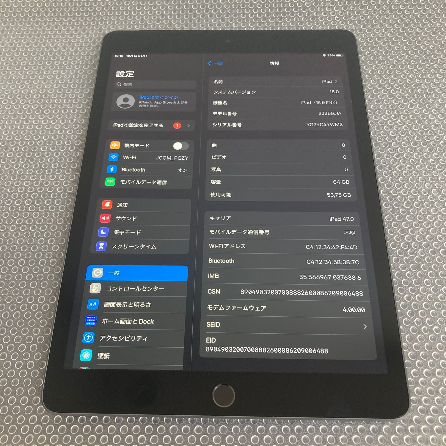 | 機種名 | iPad(第9世代) |