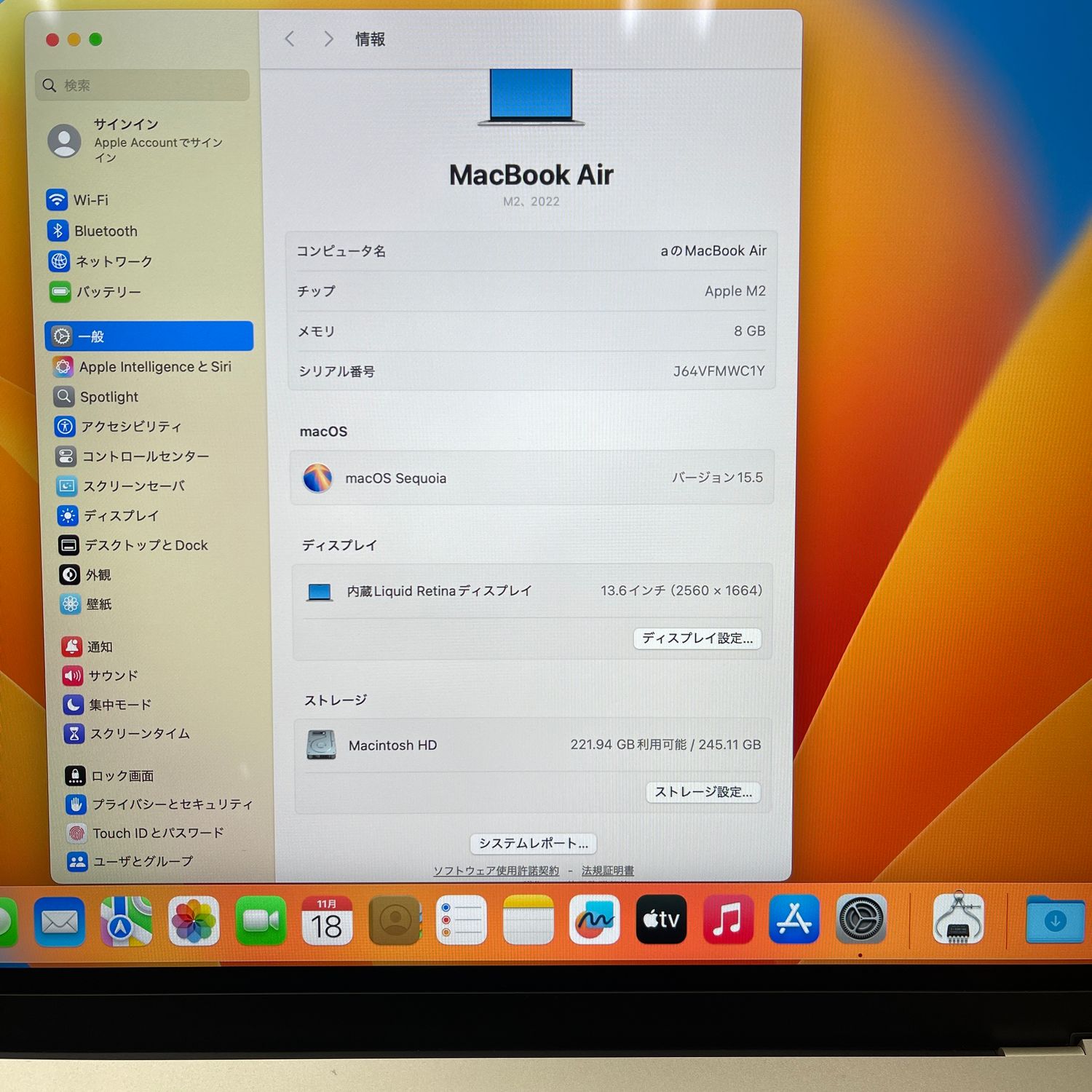 | 機種名 | Macbook Air |