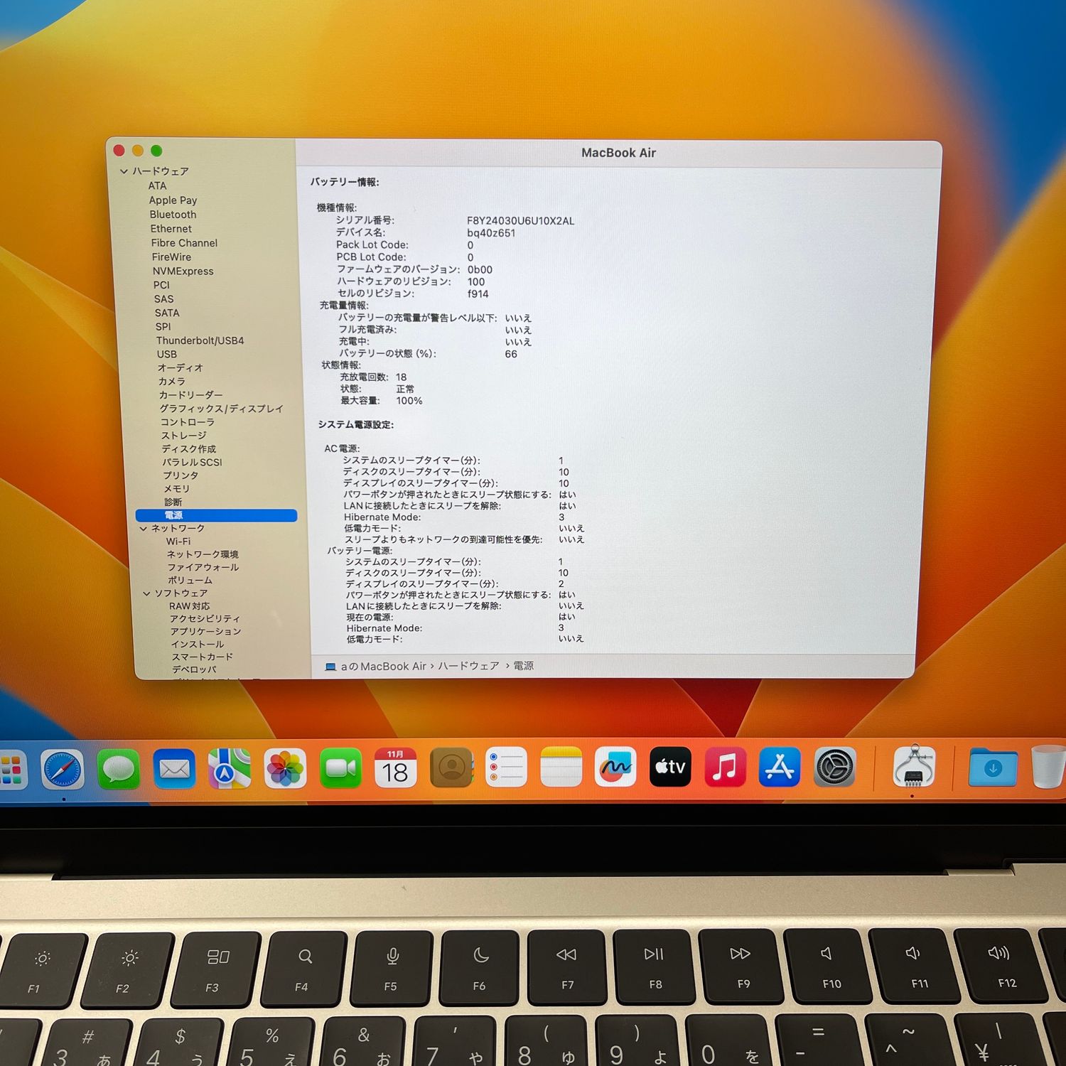 ・充電回数:18回 バッテリー:100%