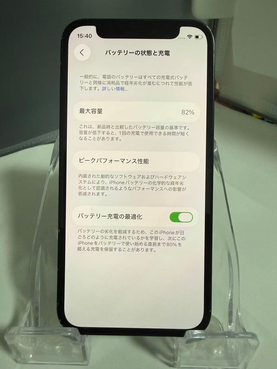 バッテリー最大容量:82%