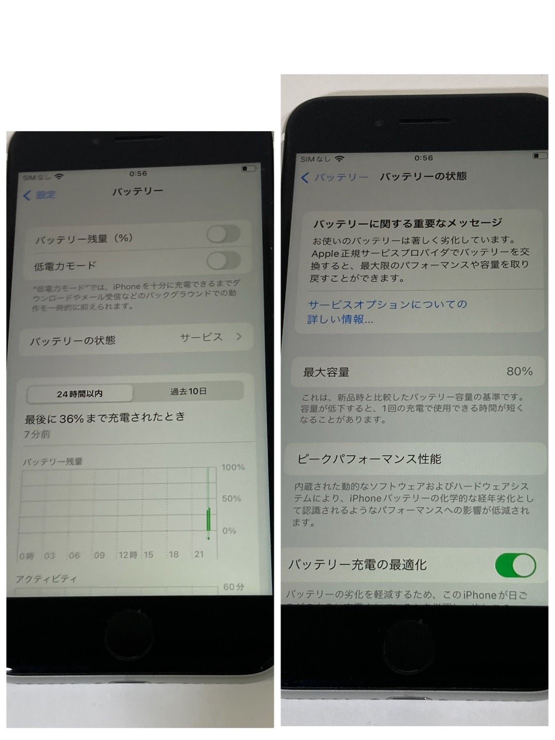 【バッテリーの状態】80%サービス表記(11/22時点)消耗品につき、パーセンテージ保証出来かねます