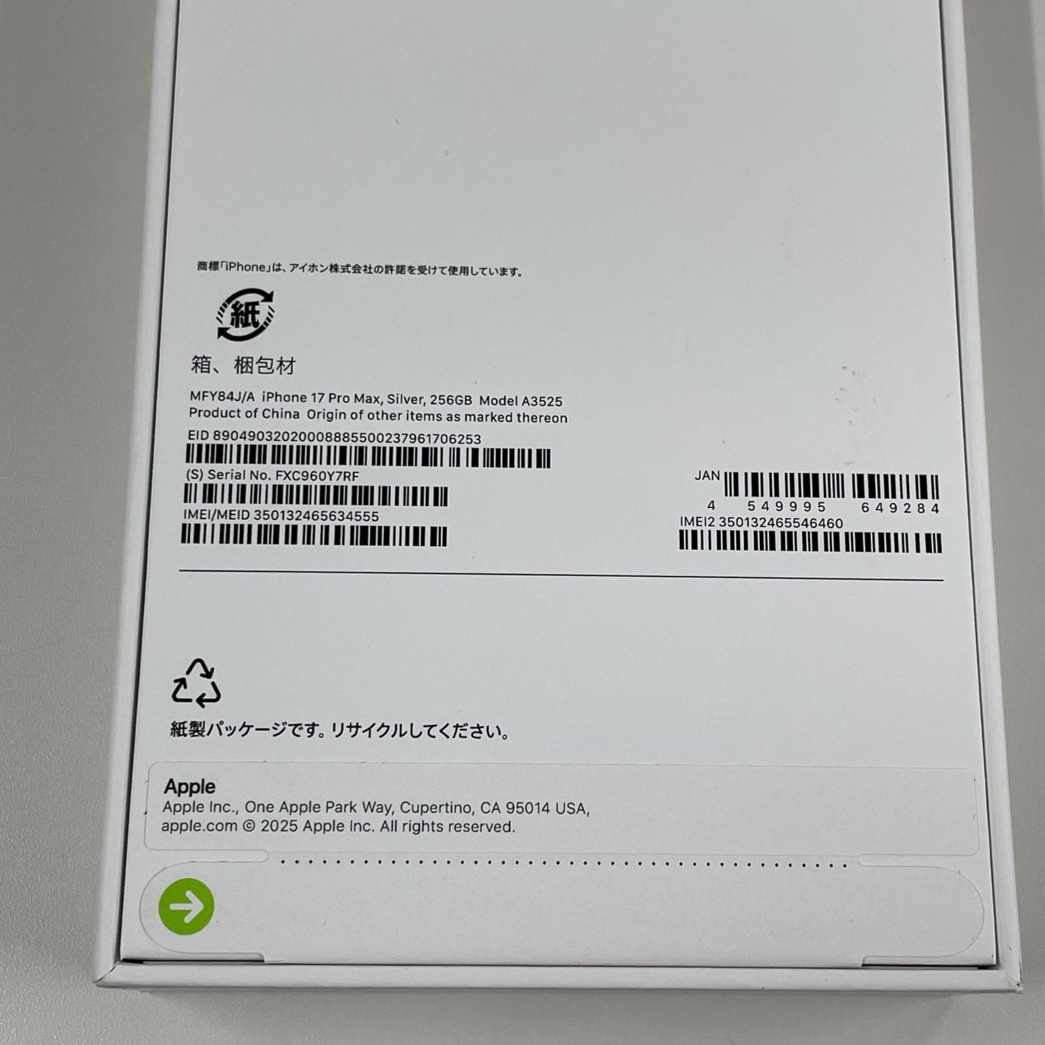 | 機種名 | iPhone17 Pro Max |