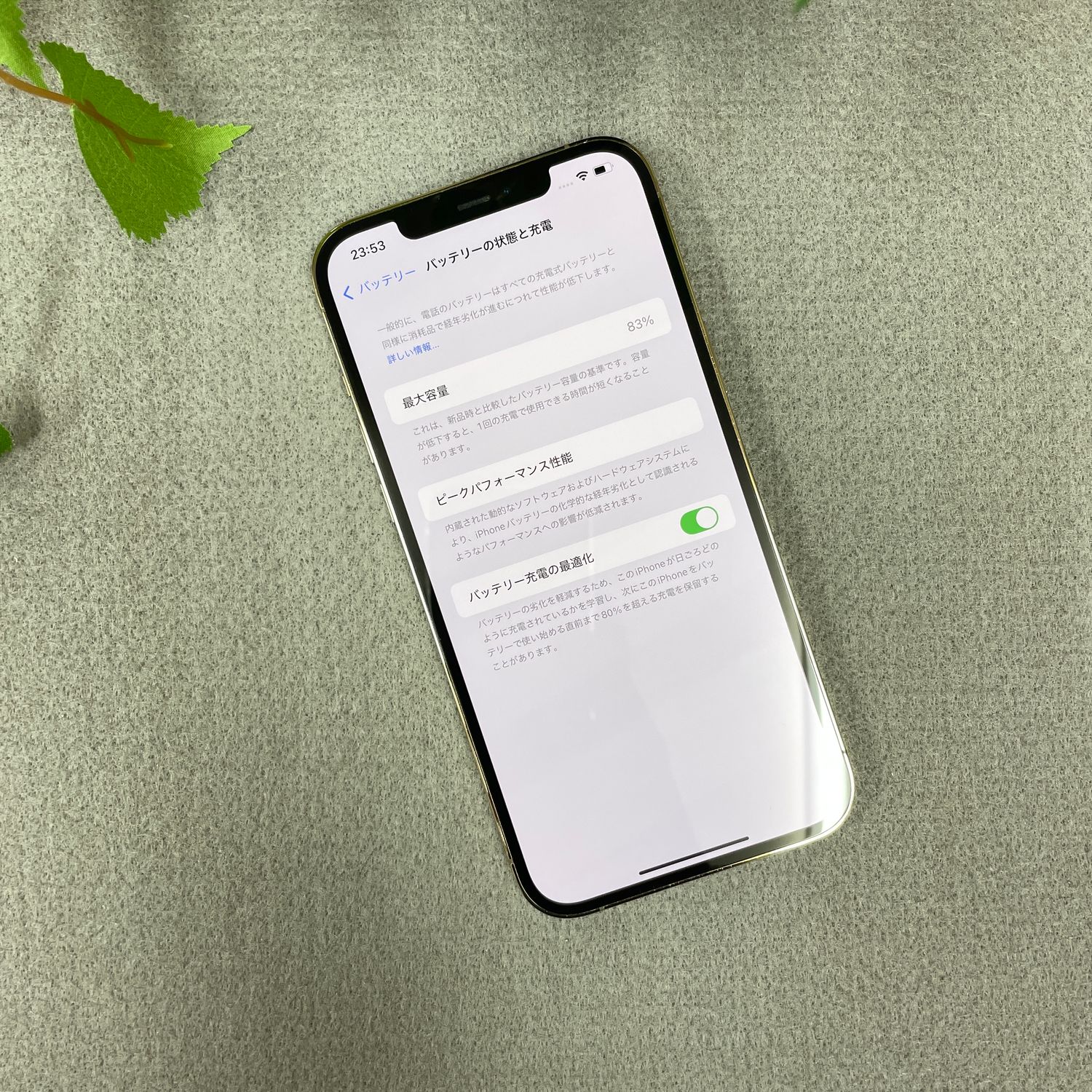 * バッテリー最大容量表示:83%