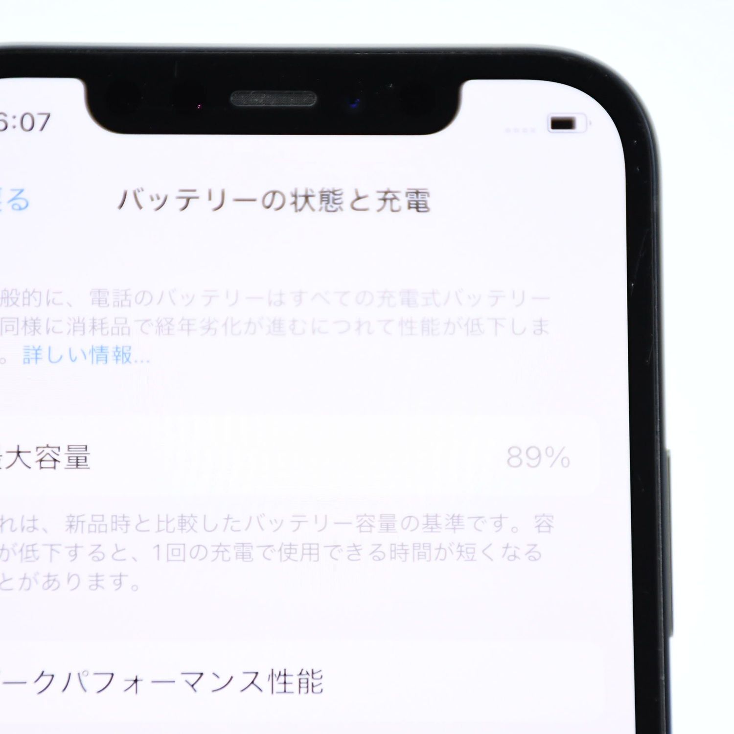 バッテリー最大容量 :100%中89%