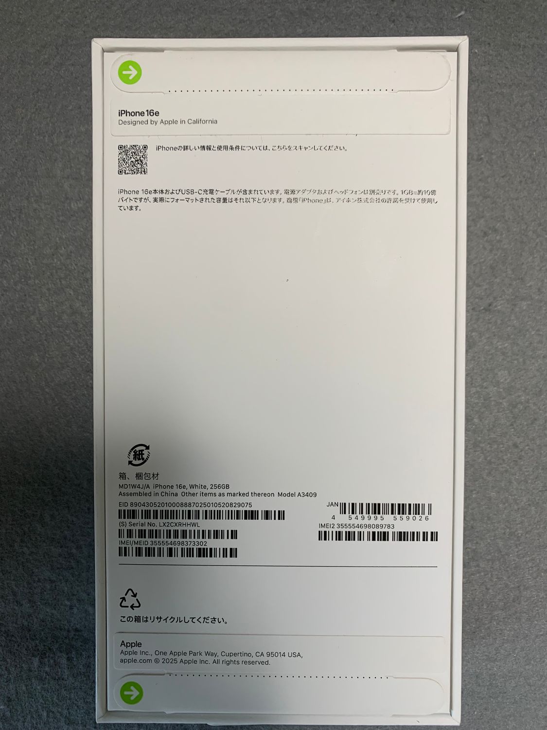 今日発送 新品未開封 国内版 SIMフリー iPhone16e 256GB ホワイト色