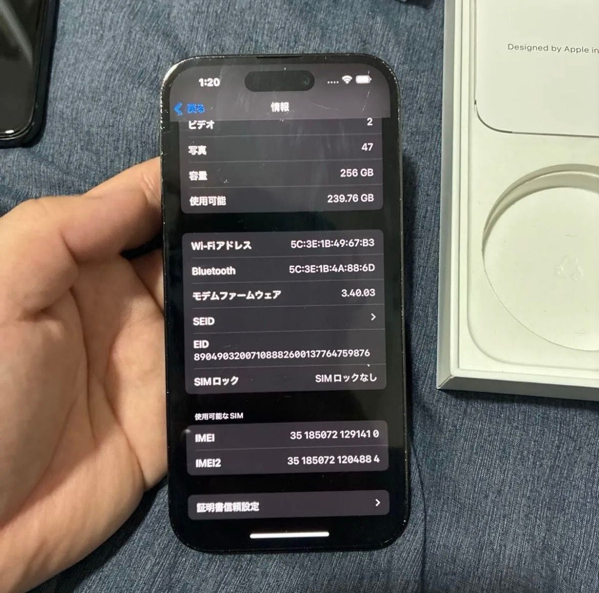| IMEI番号 | 351850721291410 |