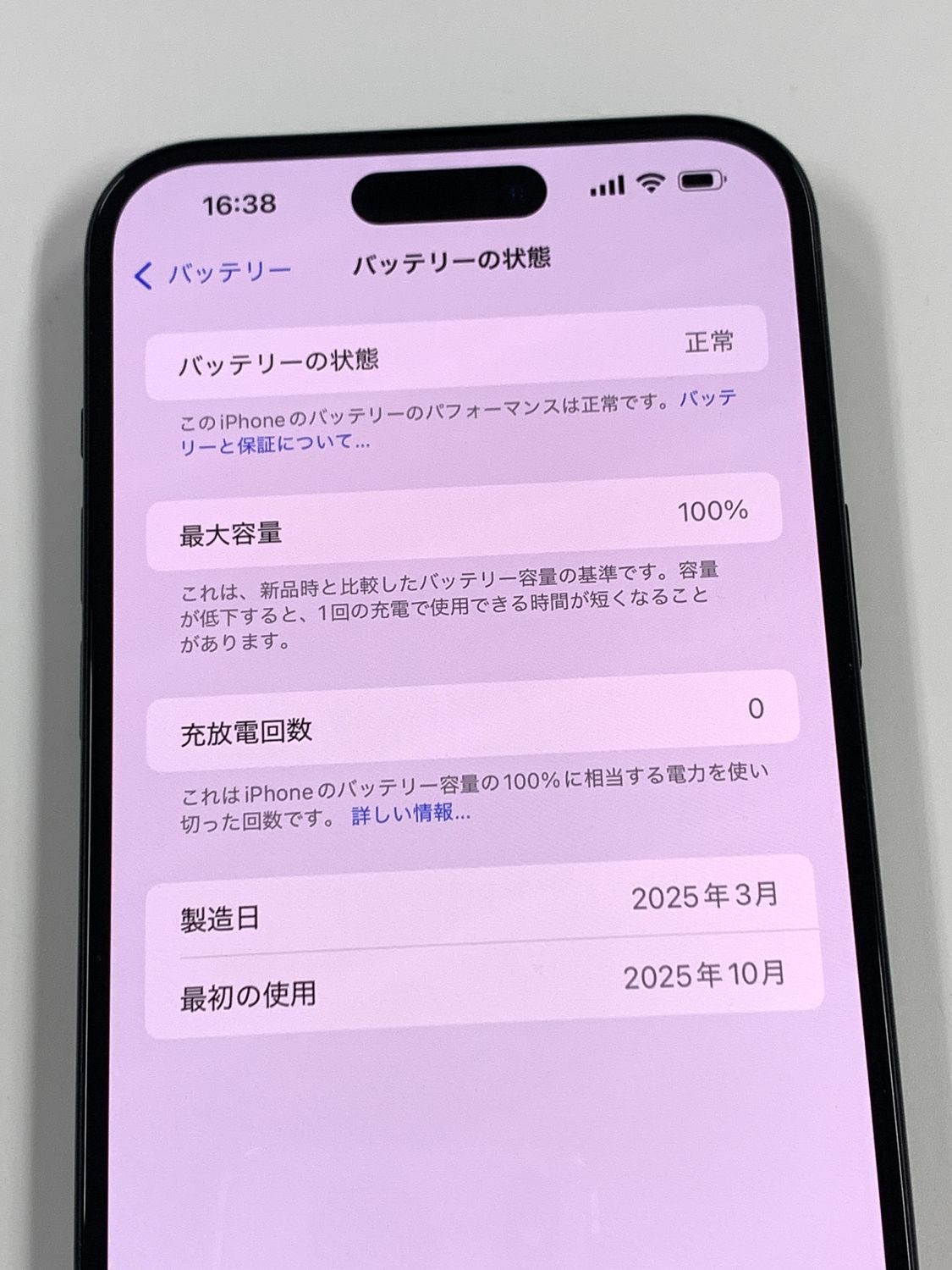 バッテリー最大容量表示:100%