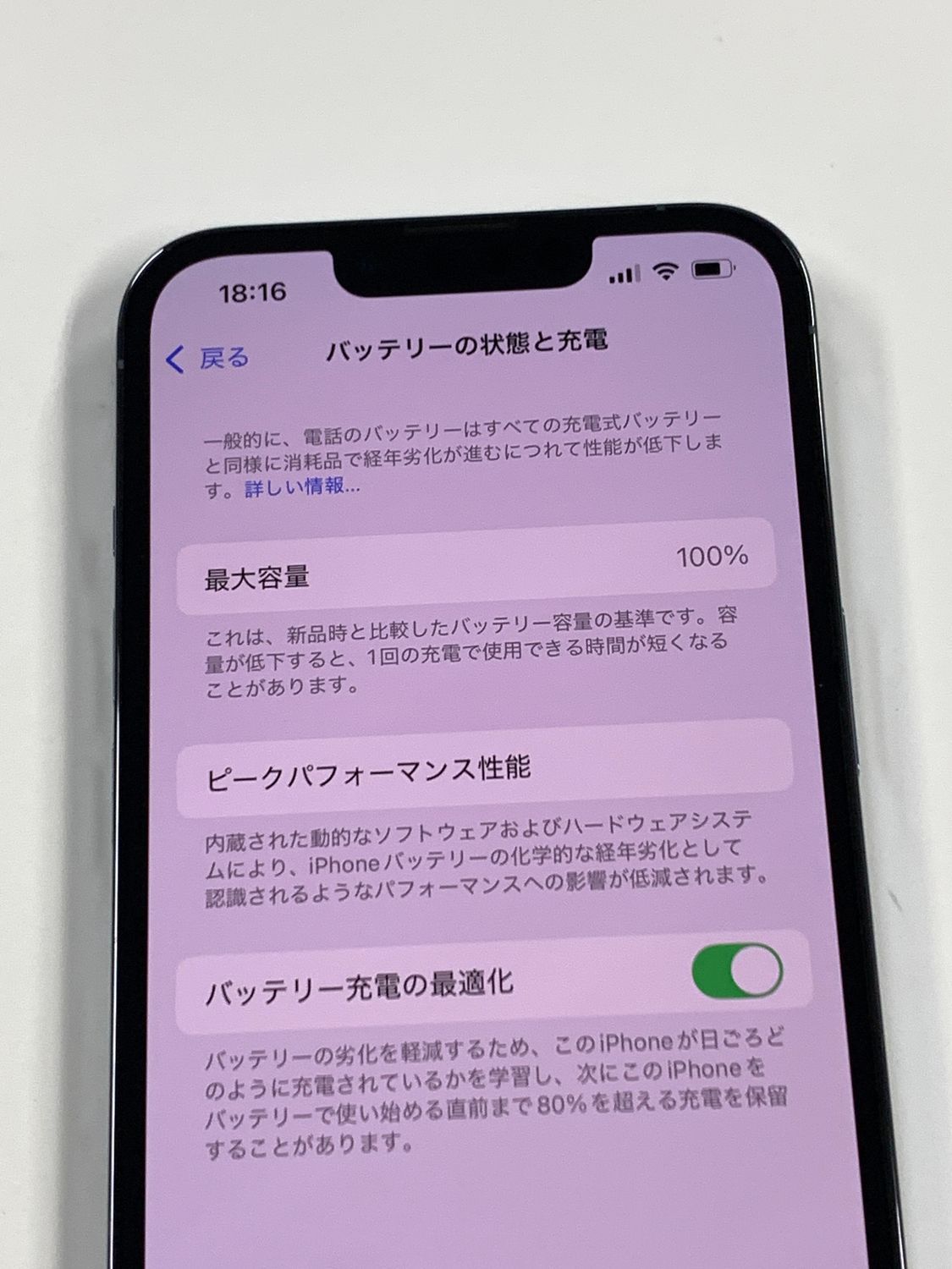 バッテリー最大容量表示:100%(充放電回数:1回)