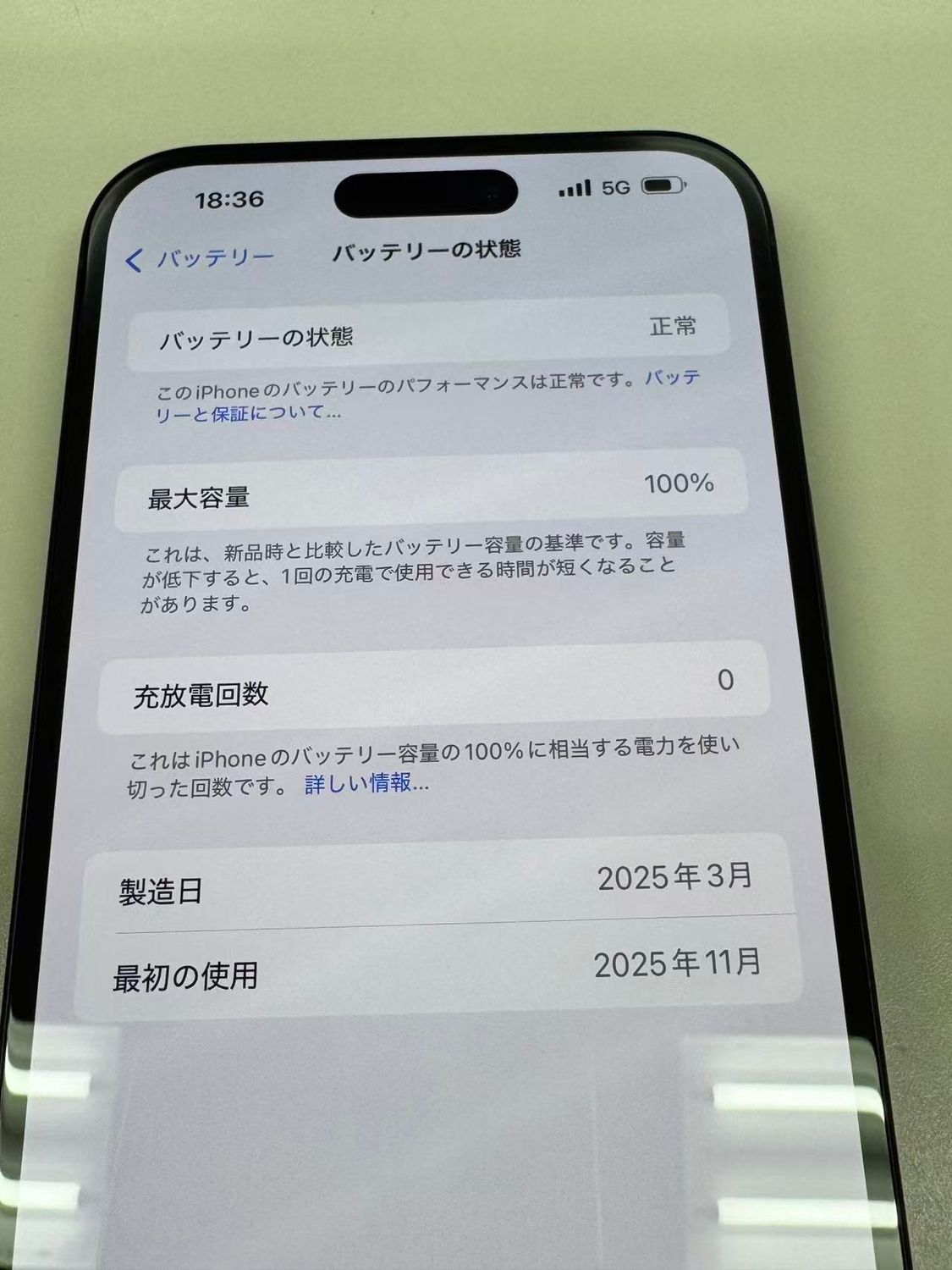 バッテリー最大容量表示:100%