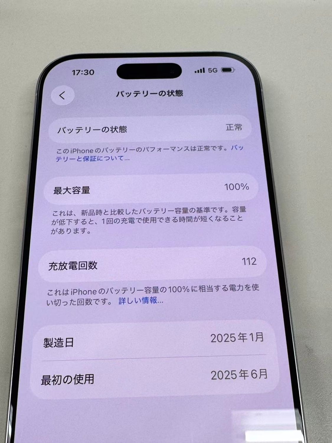 バッテリー最大容量表示:100%