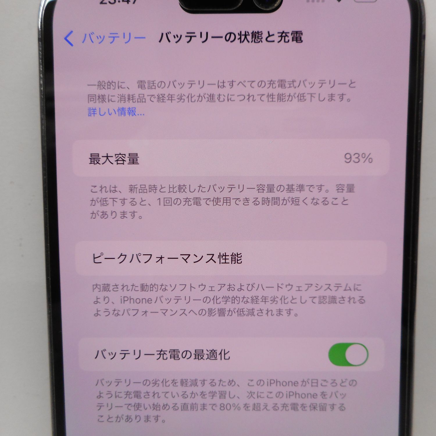 ●バッテリー最大容量:93%