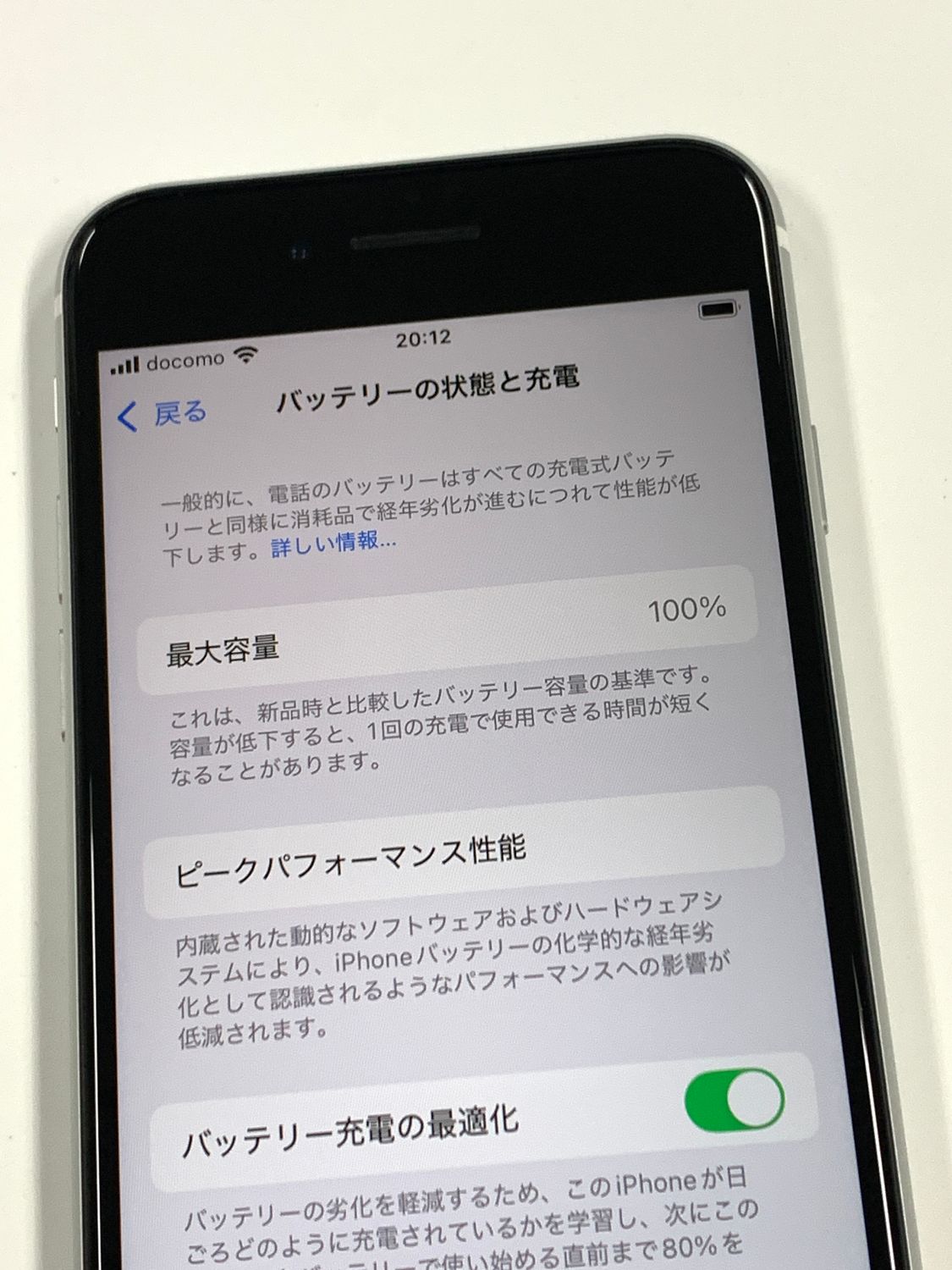 バッテリー最大容量表示:100%