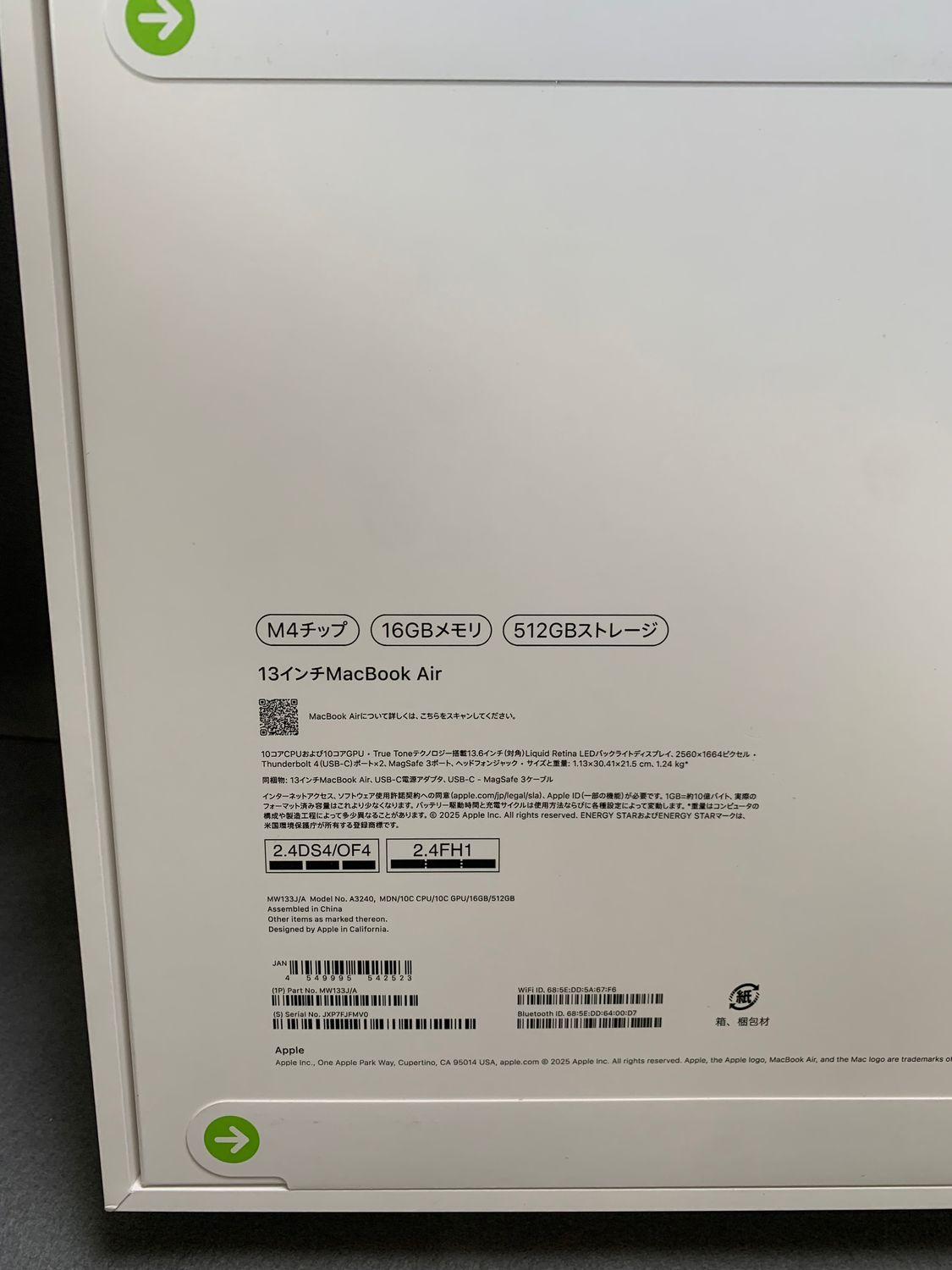 明日発送 新品未開封 MacBook Air 13インチ M4 512GB ミッドナイト色