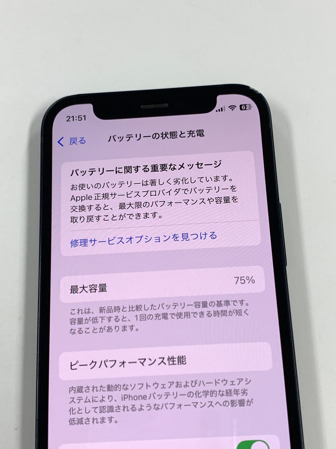 バッテリー最大容量表示:75%