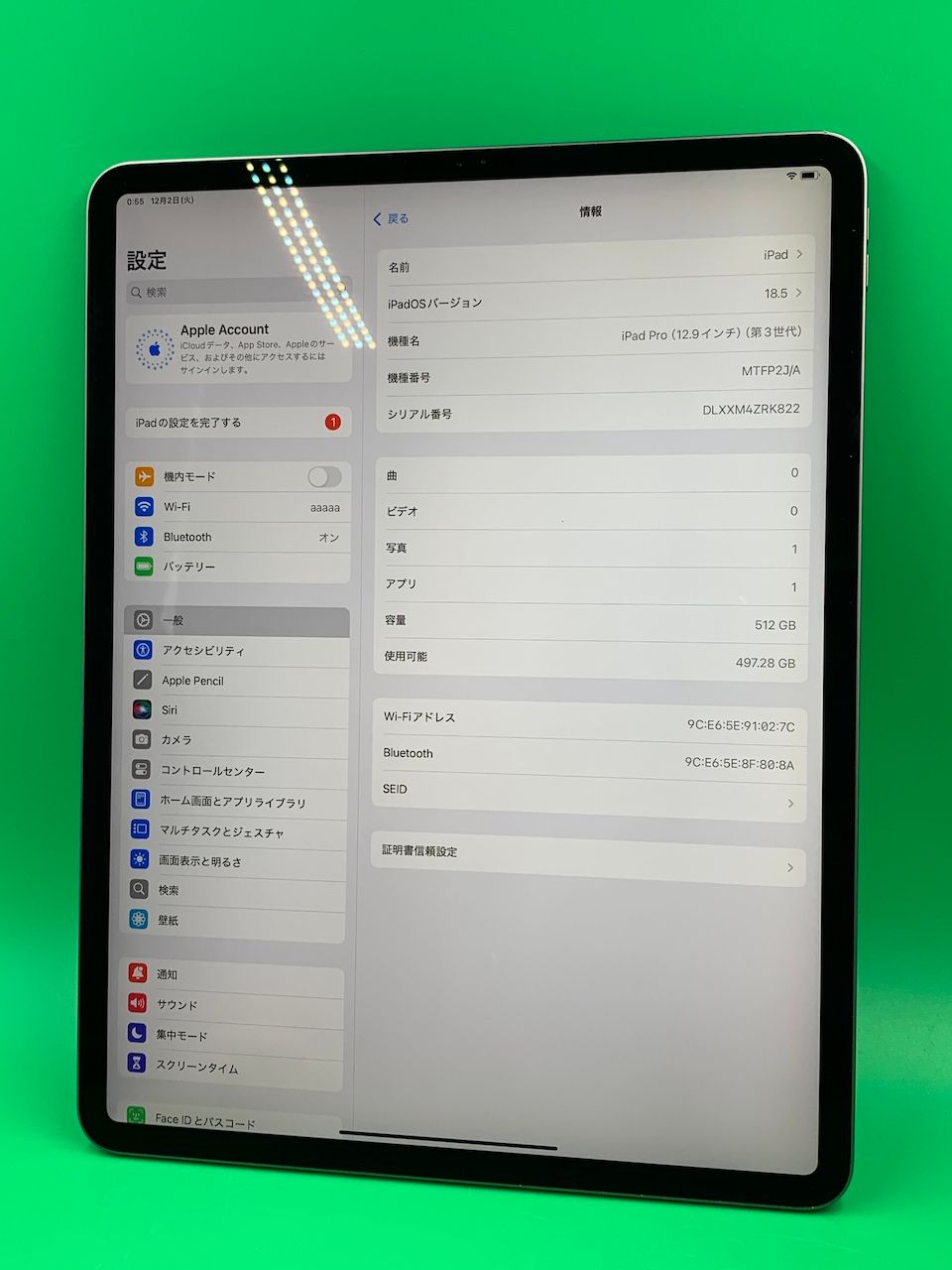 | 機種名 | iPad Pro 12.9インチ(第3世代) |