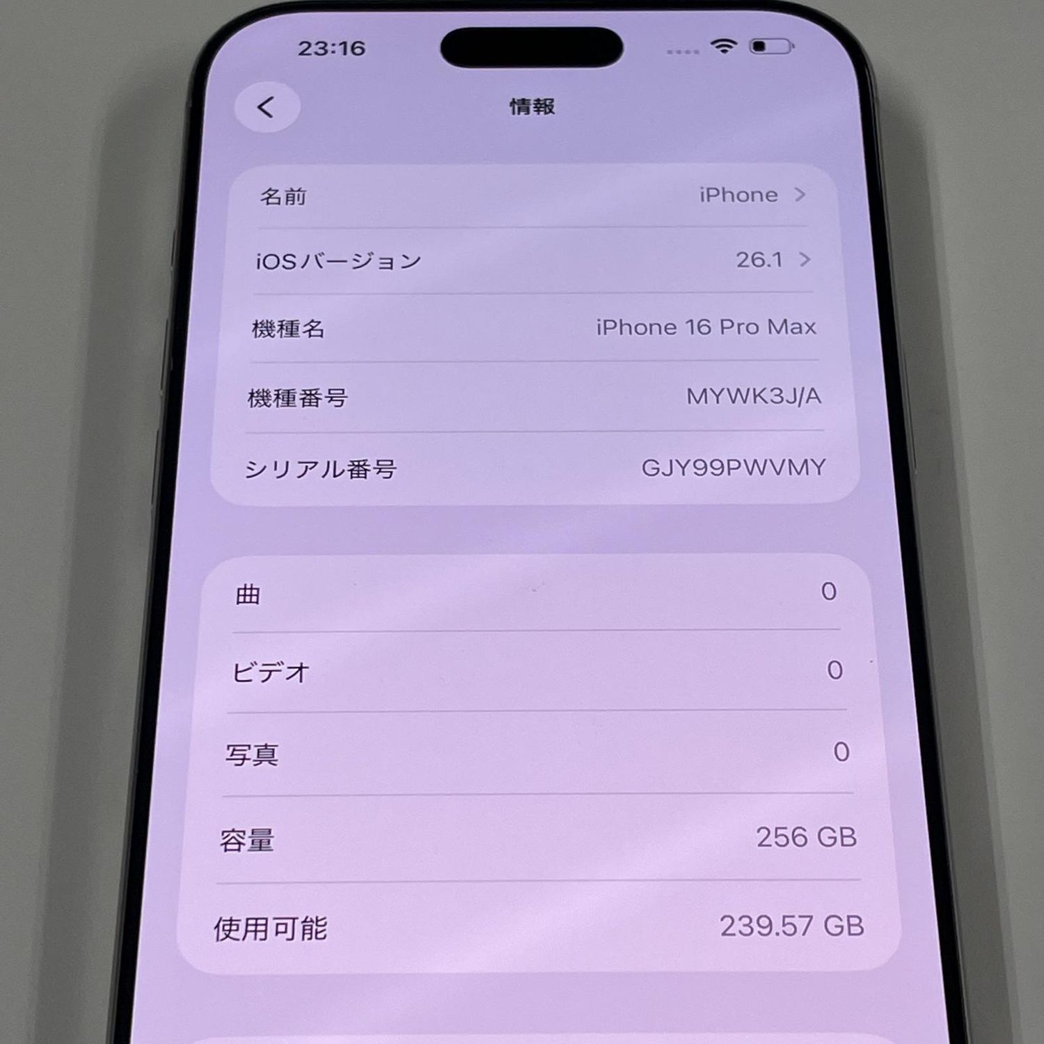 | 機種名 | iPhone16 Pro Max |