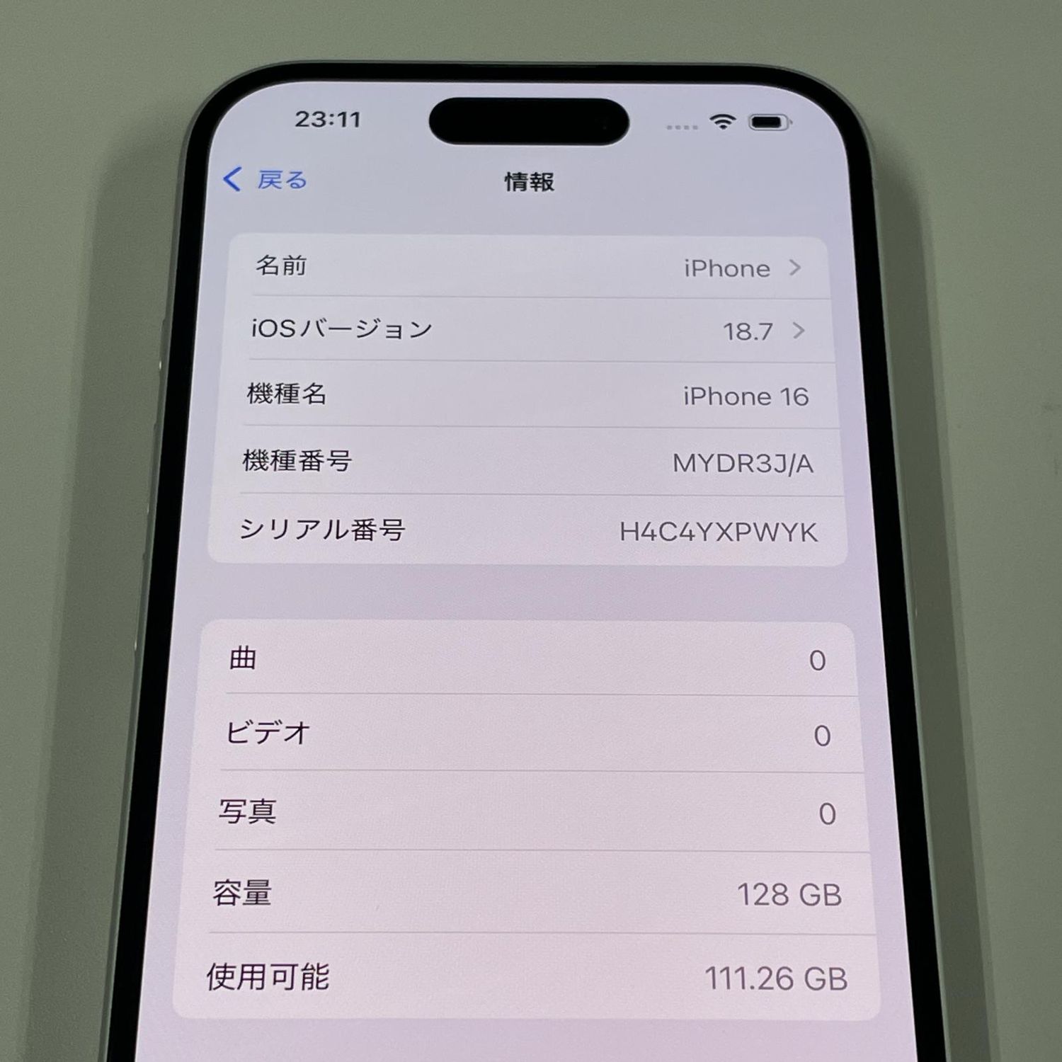 | 機種名 | iPhone16 |