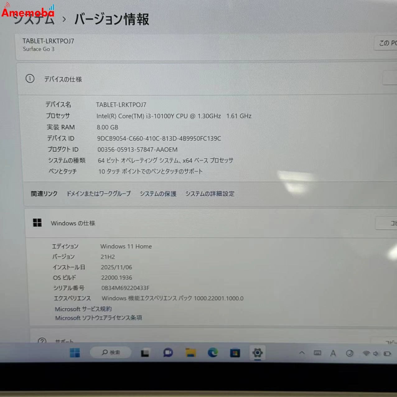 品名 Microsoft Surface Go 3 LTE Advanced 128GB プラチナ 8VH-00014 i3-10100Y 1.30GHz 1.61GHz ストア版 極美品