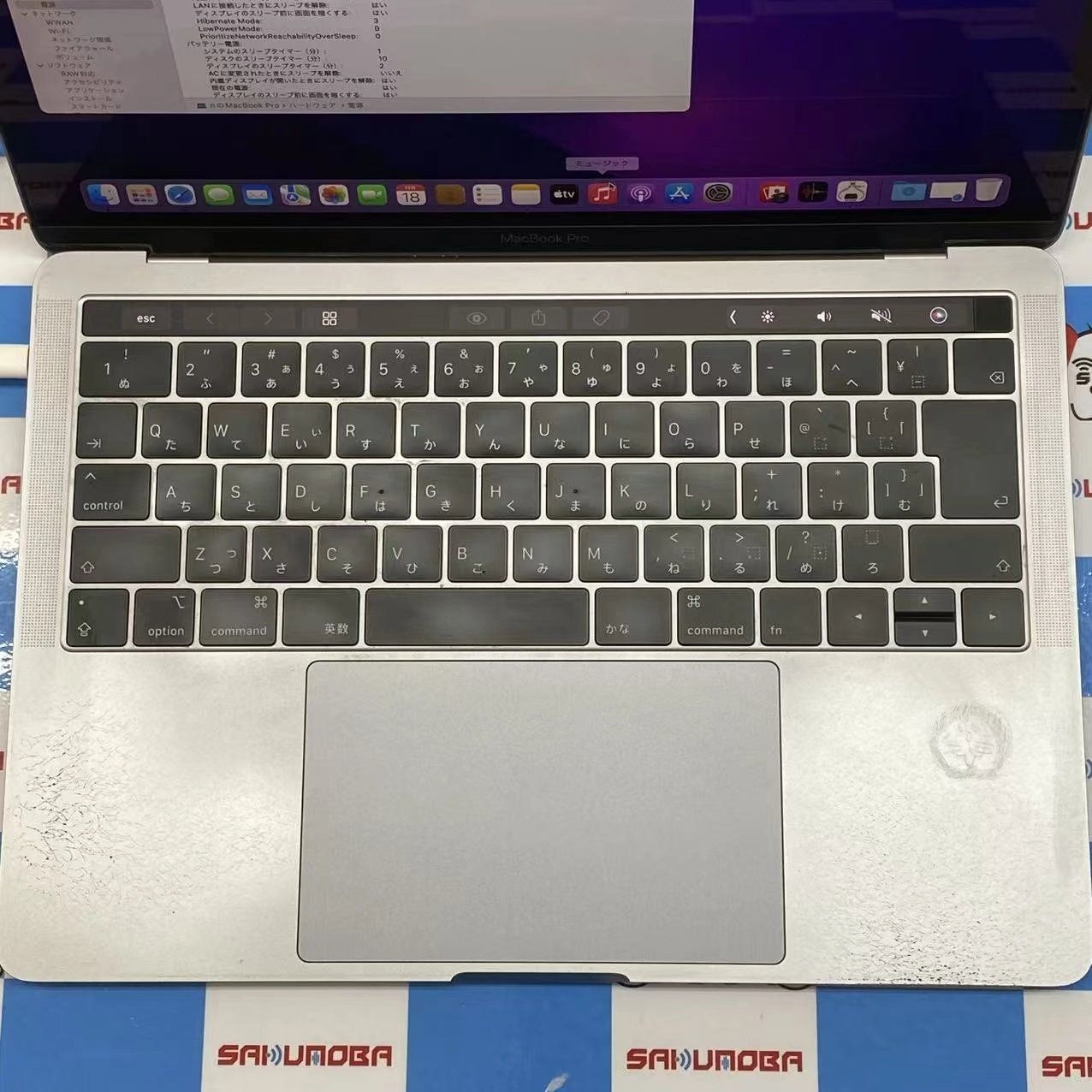 状態 訳あり品、液晶に光漏れがある為訳あり品での出品となります。表面と背面に落ちないシール跡、トラックパッドの周辺に擦り傷と落ちない跡がございます。写真では写しきれない部分もございますのでご了承ください。