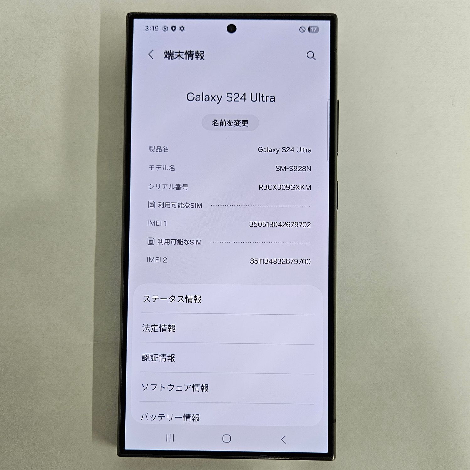 | 機種名 | Galaxy S24 Ultra |