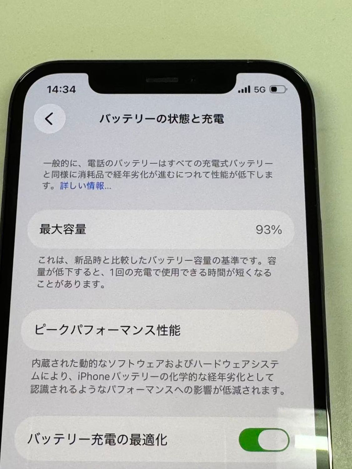 バッテリー最大容量表示:93%
