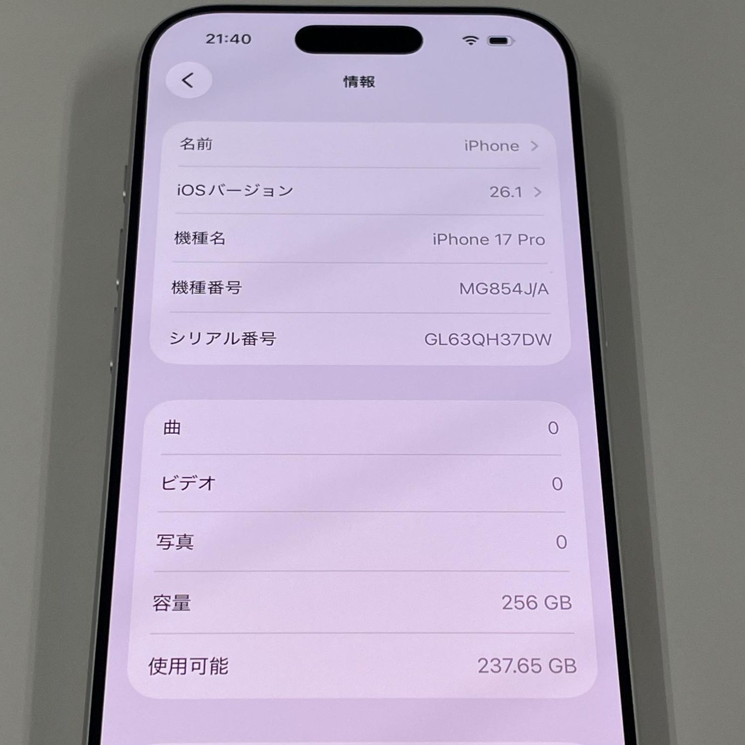 | 機種名 | iPhone17 Pro |
